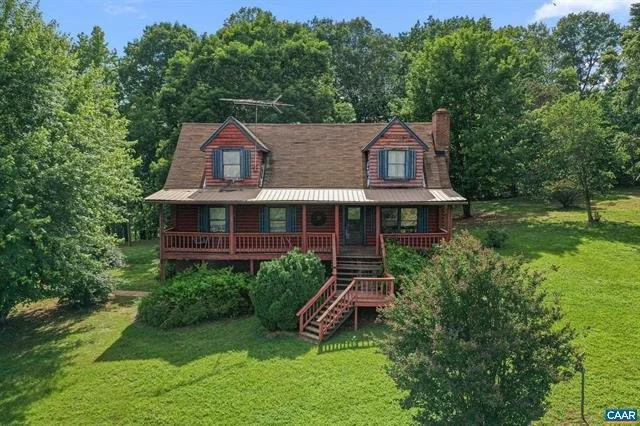 Escape to the peace, tranquility and so much potential of River Bend Farm- three beautiful parcels totaling 42.79 ac near Yogaville and the James River. The cabin consists of three bedrooms and two bathrooms. Surrounded by mature trees and open space, this inviting home offers the perfect blend of rustic charm and modern comfort. Inside is a warm, open-concept living area featuring wood-beamed ceilings, a brick fireplace, and large windows that let in plenty of natural light. The kitchen is spacious and functional, ideal for everyday meals or entertaining guests. The second home on separate parcel consists of four bedrooms and three full bathrooms, with vaulted ceiling in the open concept living area, leading to the kitchen and breakfast nook. Full house generator. The pastured acreage, including a small pond and well-maintained pole barn, are currently leased for cattle. High speed internet with Firefly allows for remote work or streaming. Outside, enjoy peaceful mornings on either porch, explore your acreage, or take a short drive to enjoy fishing, kayaking, or hiking along the James River- or use the abundant land for raising animals or homesteading. Don’t miss out on this quiet, rural gem with endless potential.